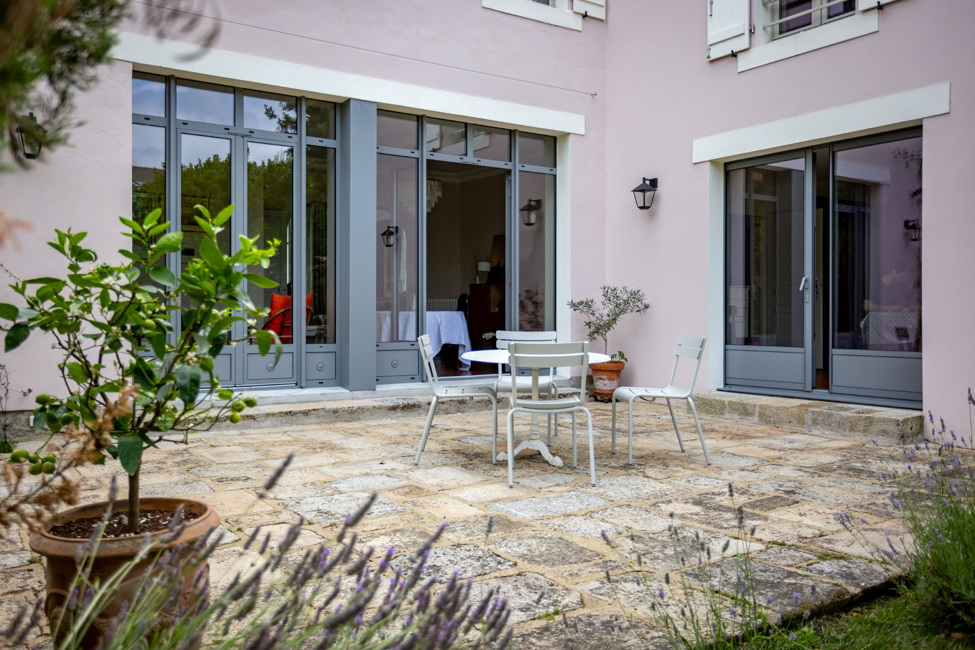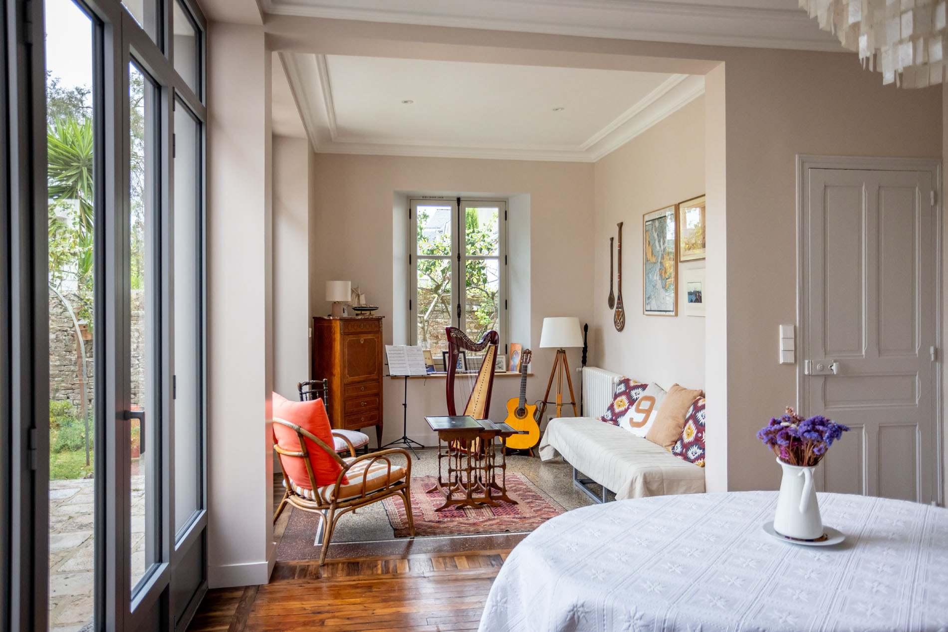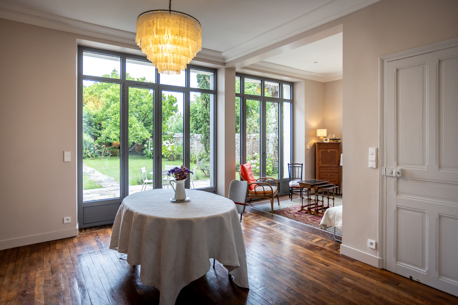 De larges baies ont été créées pour apporter davantage de lumière naturelle et renforcer le lien avec le jardin, tout en conservant les codes architecturaux initiaux : rythme des ouvertures, modénatures, composition générale des façades.