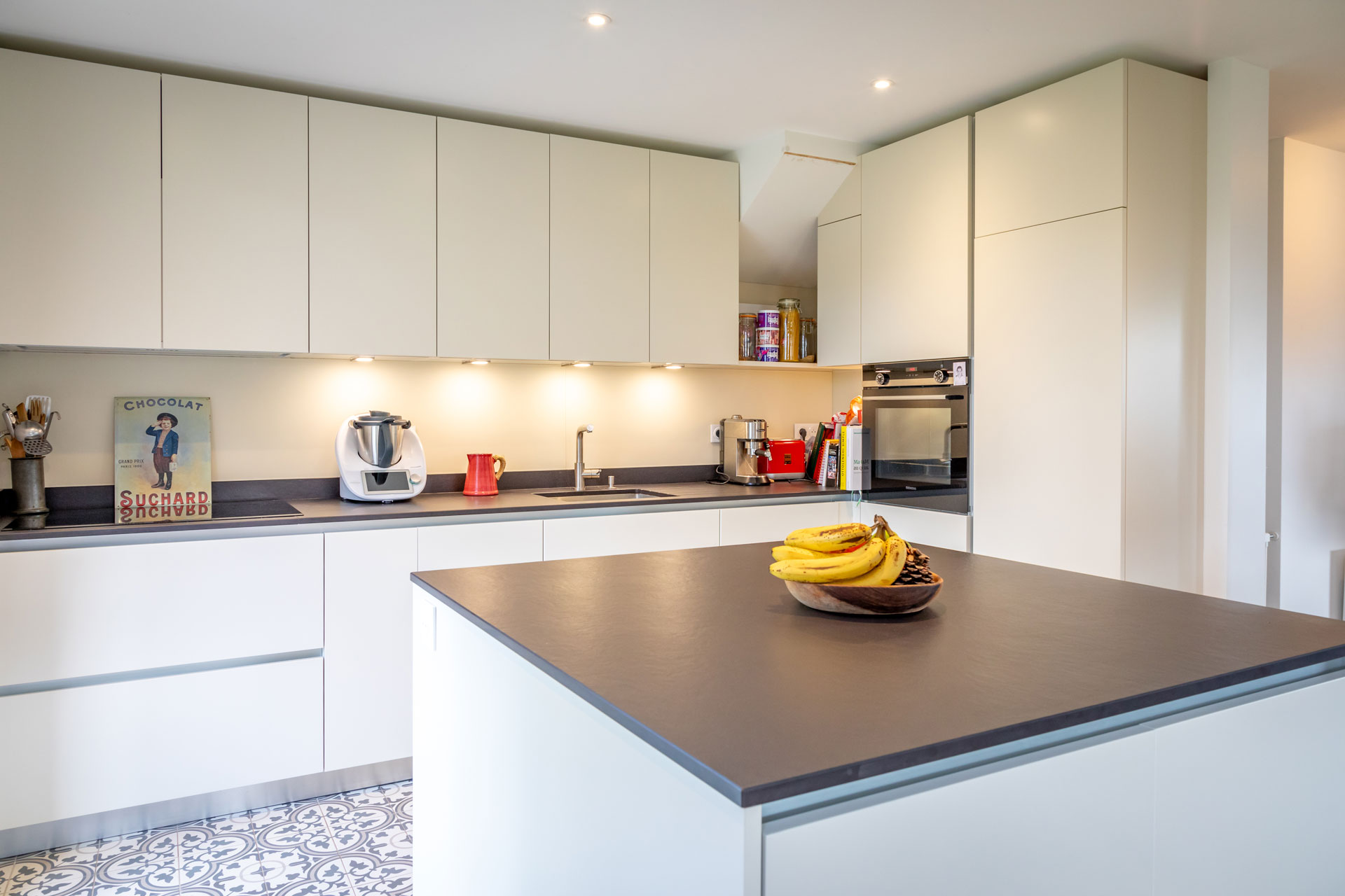 Les espaces de vie ont eux aussi été repensés, notamment la cuisine, pour conjuguer fonctionnalité et sobriété sans tout remplacer.Un projet guidé par la volonté de moderniser l’existant et de tirer le meilleur parti du bâti d’origine.